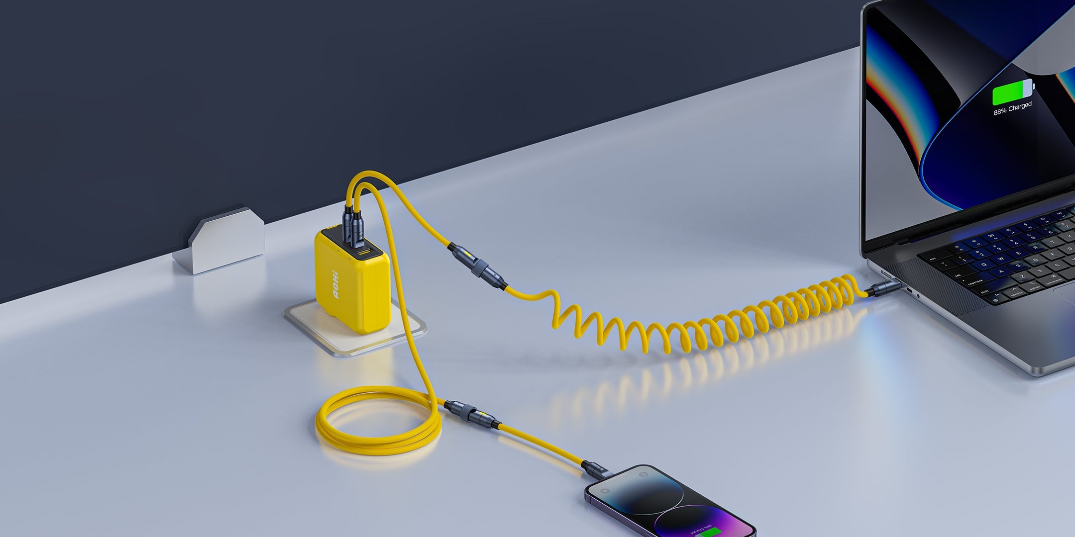 AOHI 240W 5 in 1 Nylon Creative Power Cable Set & Magcube 140W Pro GaN+ Fast Charger